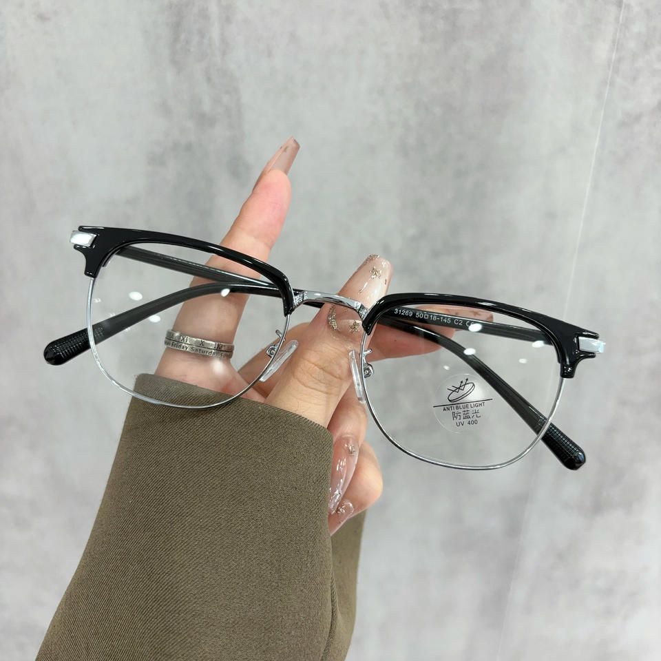 31269 Monture de lunettes unisexe demi-cerclée ovale avec verres PC anti-lumière bleue pour la protection de la vision de près