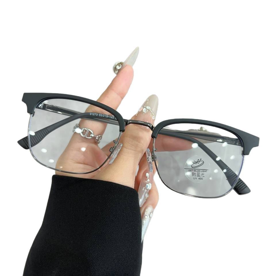 31273 Lunettes demi-cerclées unisexes à monture extra large, verres PC anti-lumière bleue pour grands visages