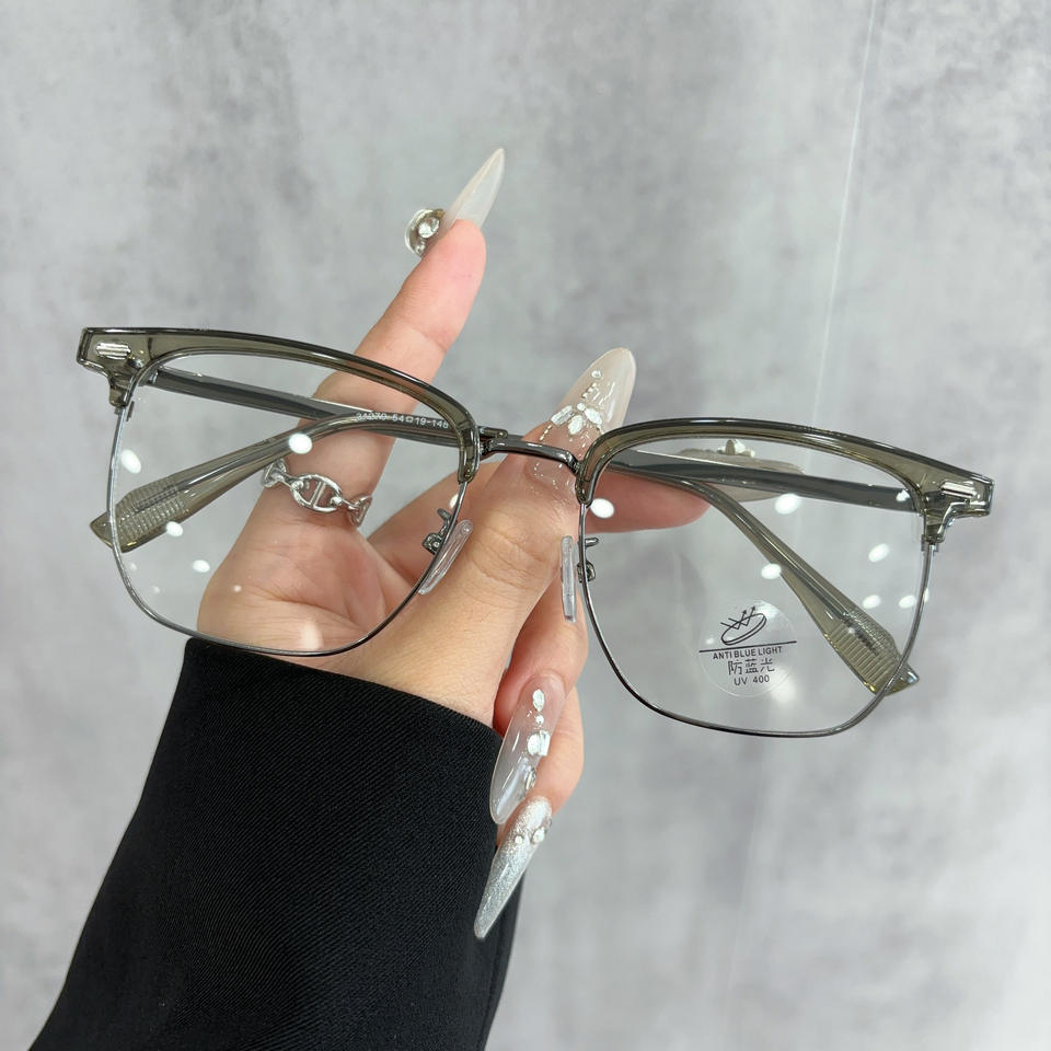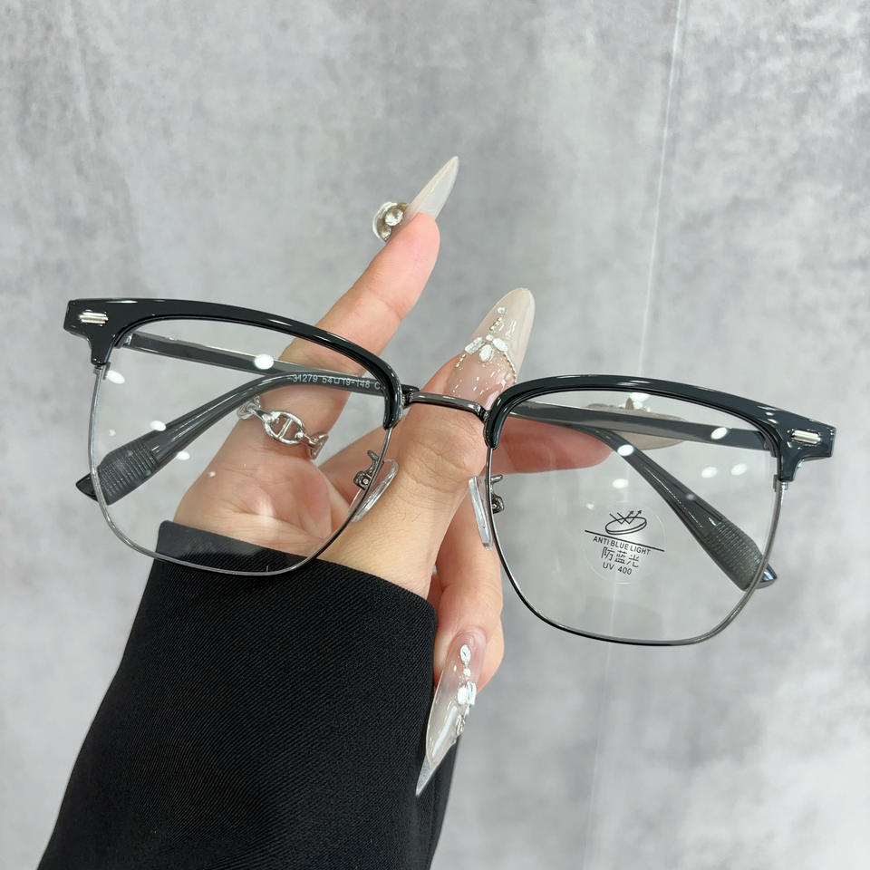 Monture de lunettes demi-cerclée rectangulaire 31279 unisexe avec verres PC anti-lumière bleue, idéale pour les grands visages