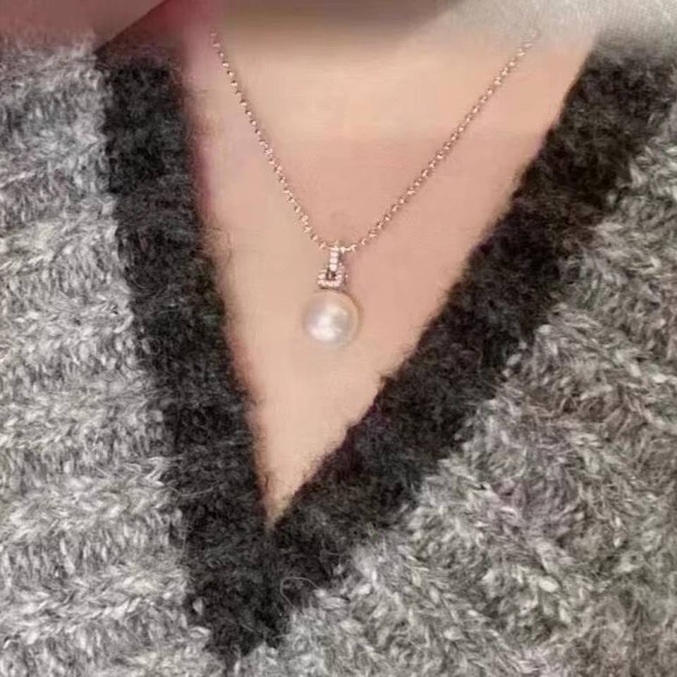 31285 DIY Pearl Accessories S925 Silver Pendant with 10-13mm Round Beads Fashionable and Simple Stand Empty Pendant Accessory