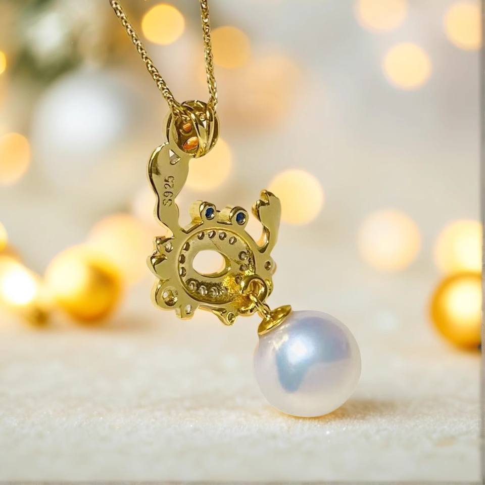 31306 DIY Pearl Accessories S925 Silver Pendant with Empty Crabs 7-9mm Round Beads Jewelry Findings for Necklace