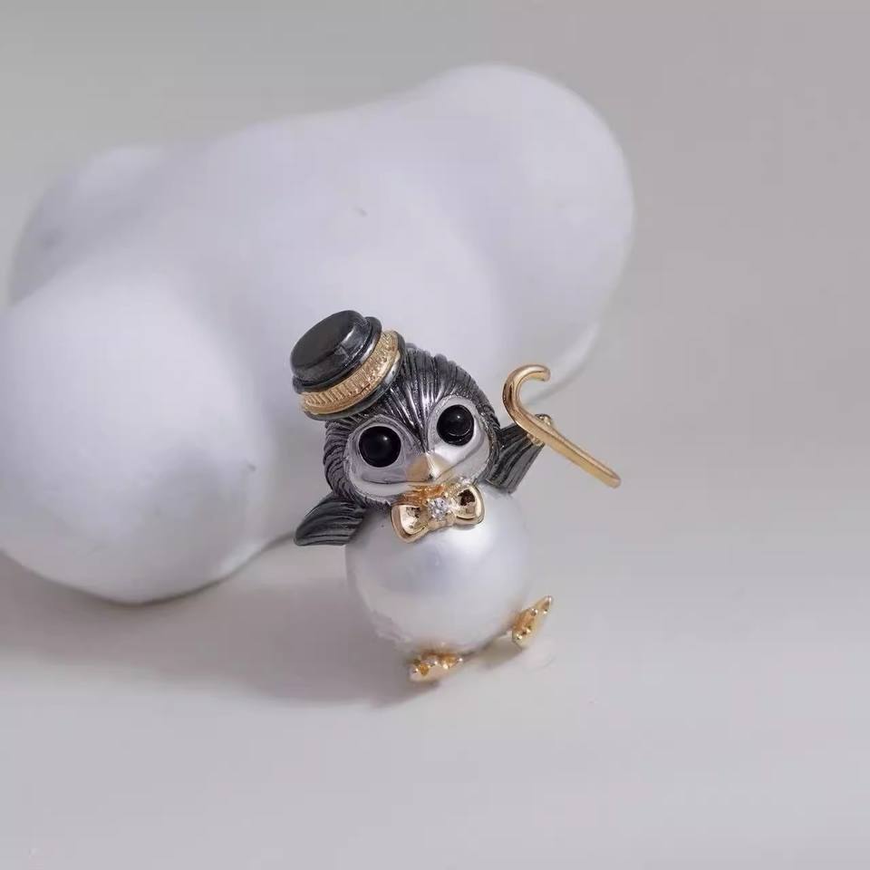 31329 DIY Female Fashion Pendant S925 Silver Empty Penguin Style 10-12mm Beads Supporting Accessories for Pearl Pendants Charms