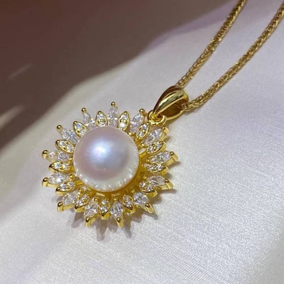 31354DIY S925 Silver Pendant with 8-10mm Beads Female Air Holder Concealer Fashion Pendant Accessories for Necklaces DIY Pearl