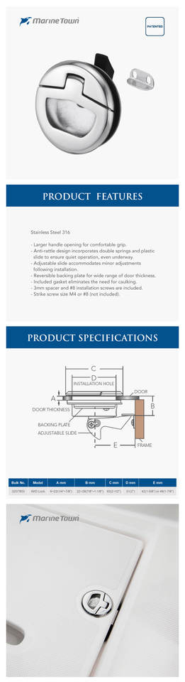 316 Stainless Steel 2" Marine Slam Latch Non-Locking Boat Hatch Handle