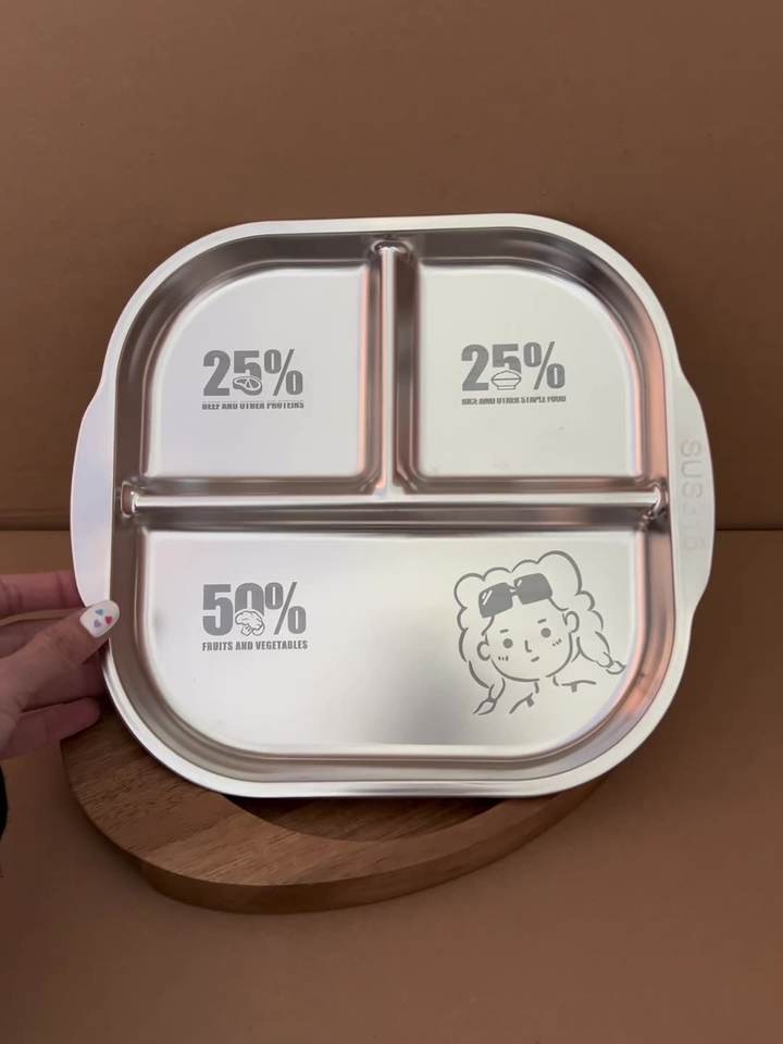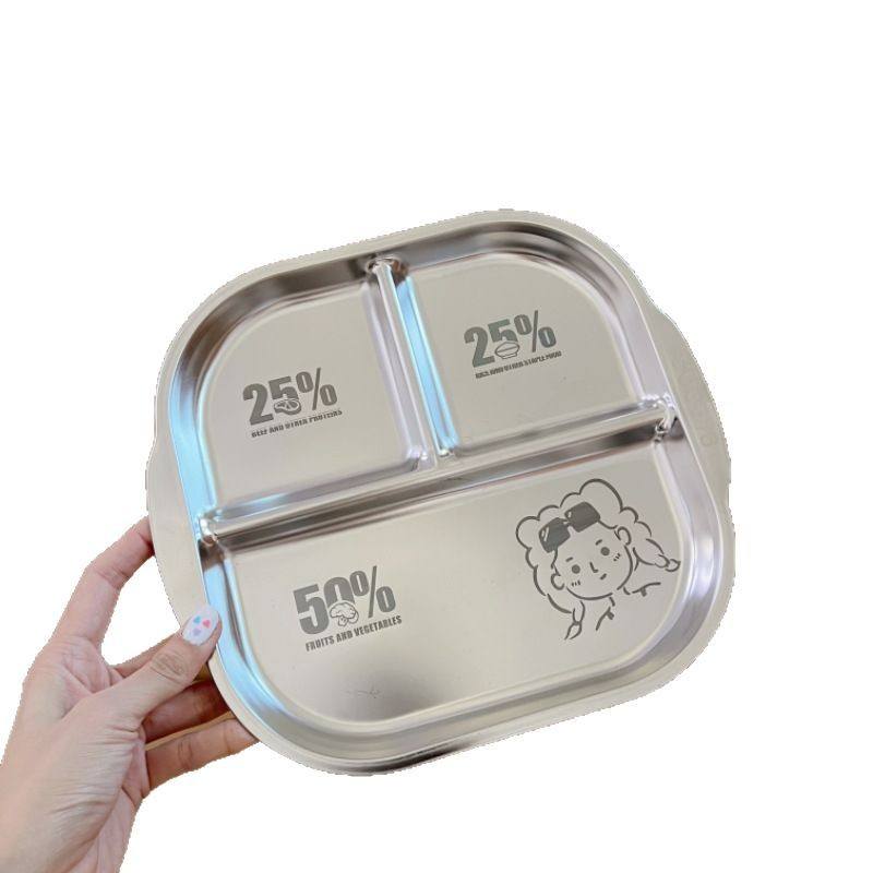 316 assiette à dîner en acier inoxydable pour enfants dessin animé mignon compartimenté de qualité alimentaire 3-plaque de séparation perte de poids contrôle de régime