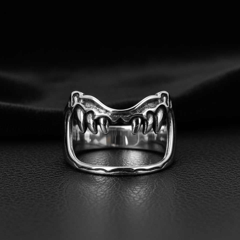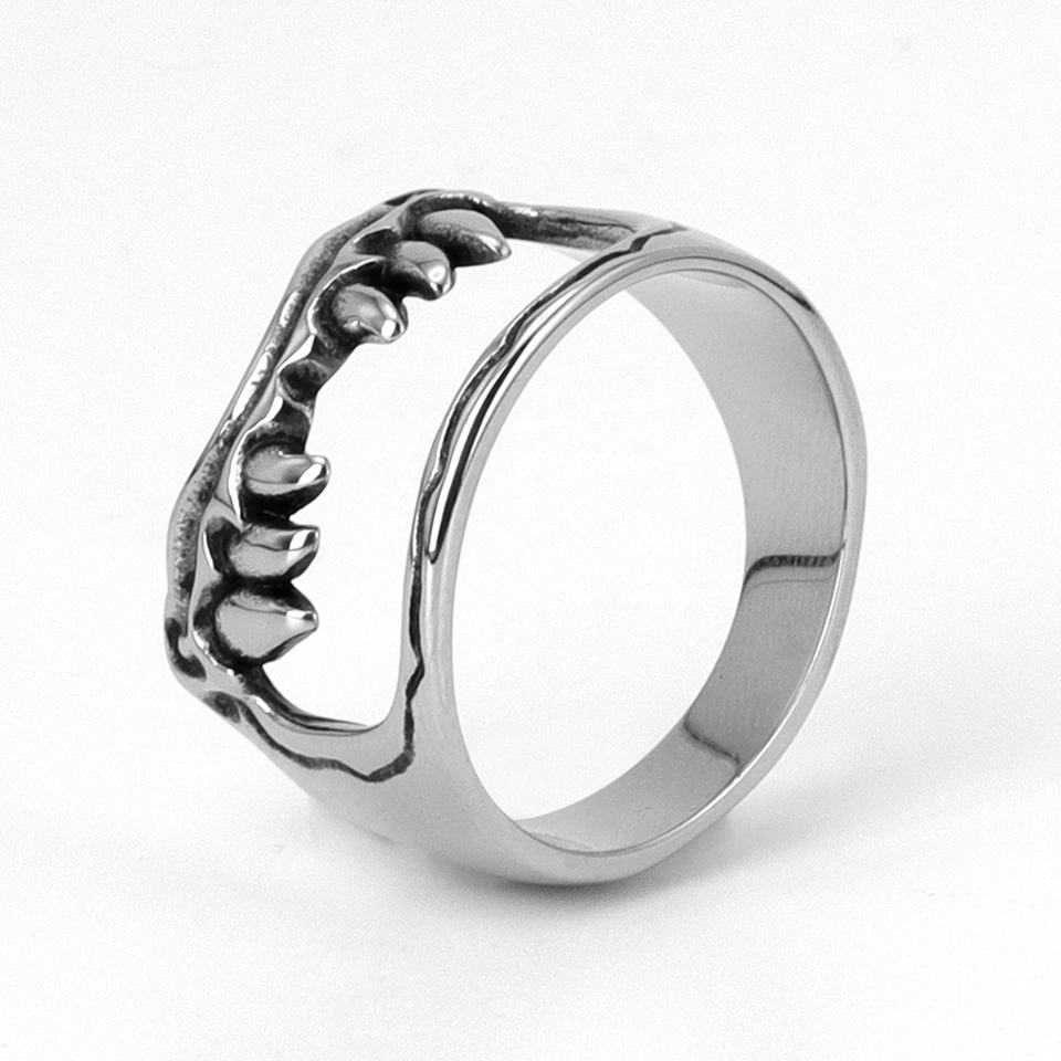 Anneau de bouche gothique en acier inoxydable 316 pour homme, finition argentée polie, style punk audacieux, texture découpée, design sombre et épuré, Yunnique