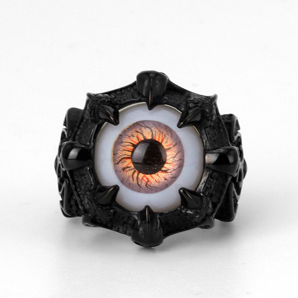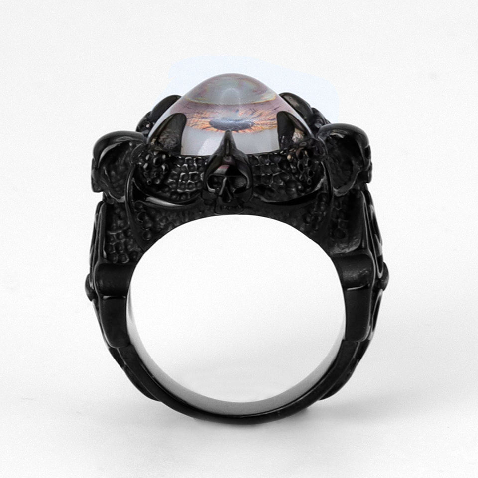 Bague en acier inoxydable 316, style gothique punk, œil de démon, griffe, pour homme, métal noir, texture 3D œil, design audacieux, sombre et rébelliant