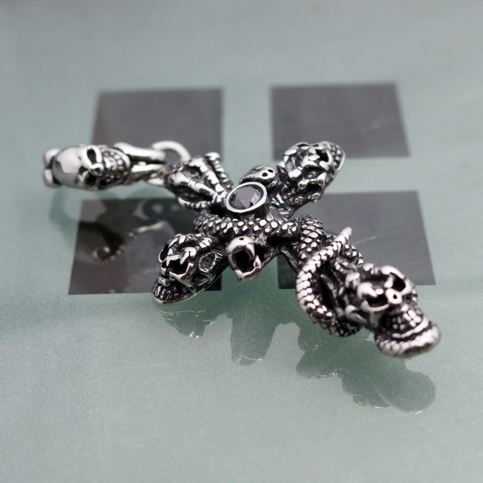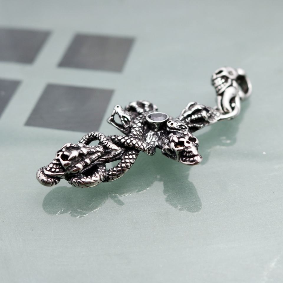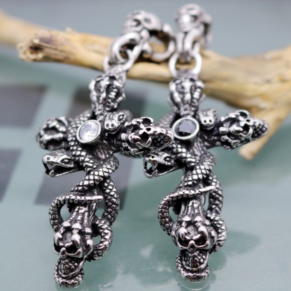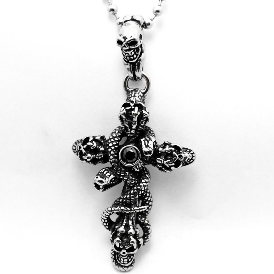 Pendentif croix-gothique en acier inoxydable 316 avec serpent entortillé, collier personnalisé tendance, bijoux pour hommes