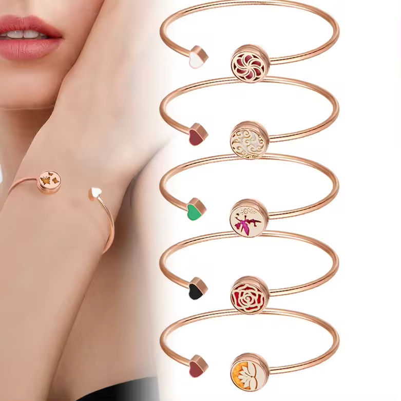 316 acier inoxydable Mini 12mm Bracelet en or Rose évidé parfum huile essentielle Bracelet parfum Anti moustique