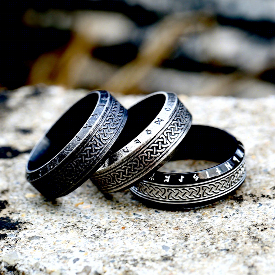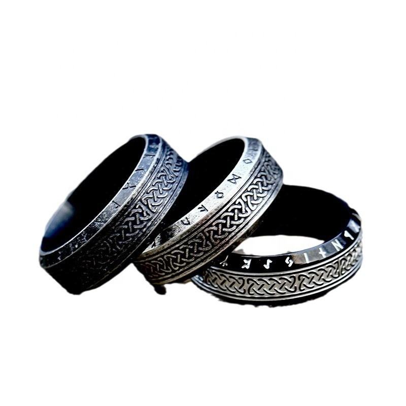 Bague unisexe en acier inoxydable 316, motif runes celtiques vikings, finition argent antique, nœuds celtiques audacieux, style motard punk, pour usage quotidien