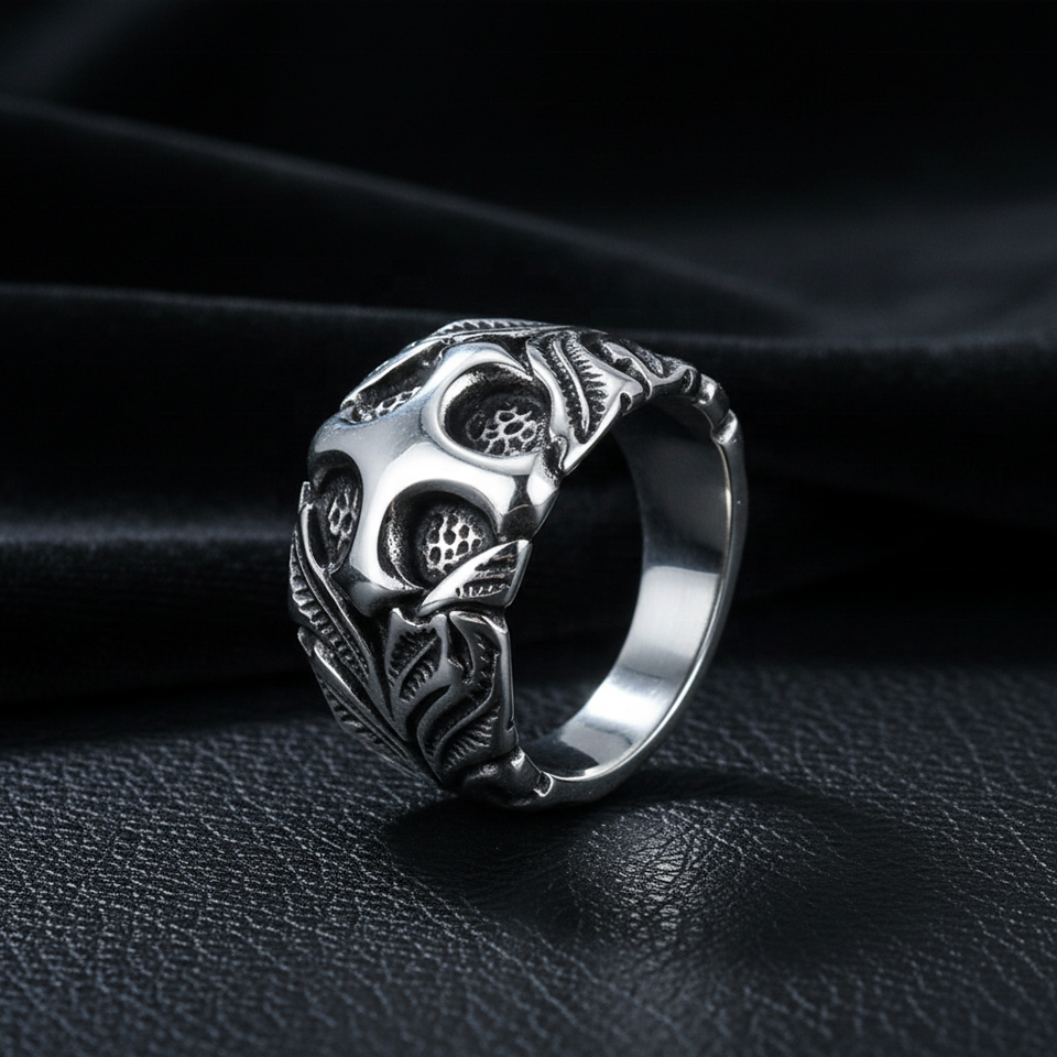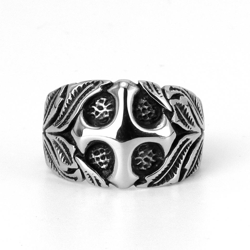 Bague pour homme en acier inoxydable 316, motif croix gothique à volutes, en métal argenté poli, style punk vintage, avec gravure en relief audacieuse, silhouette rétro sombre