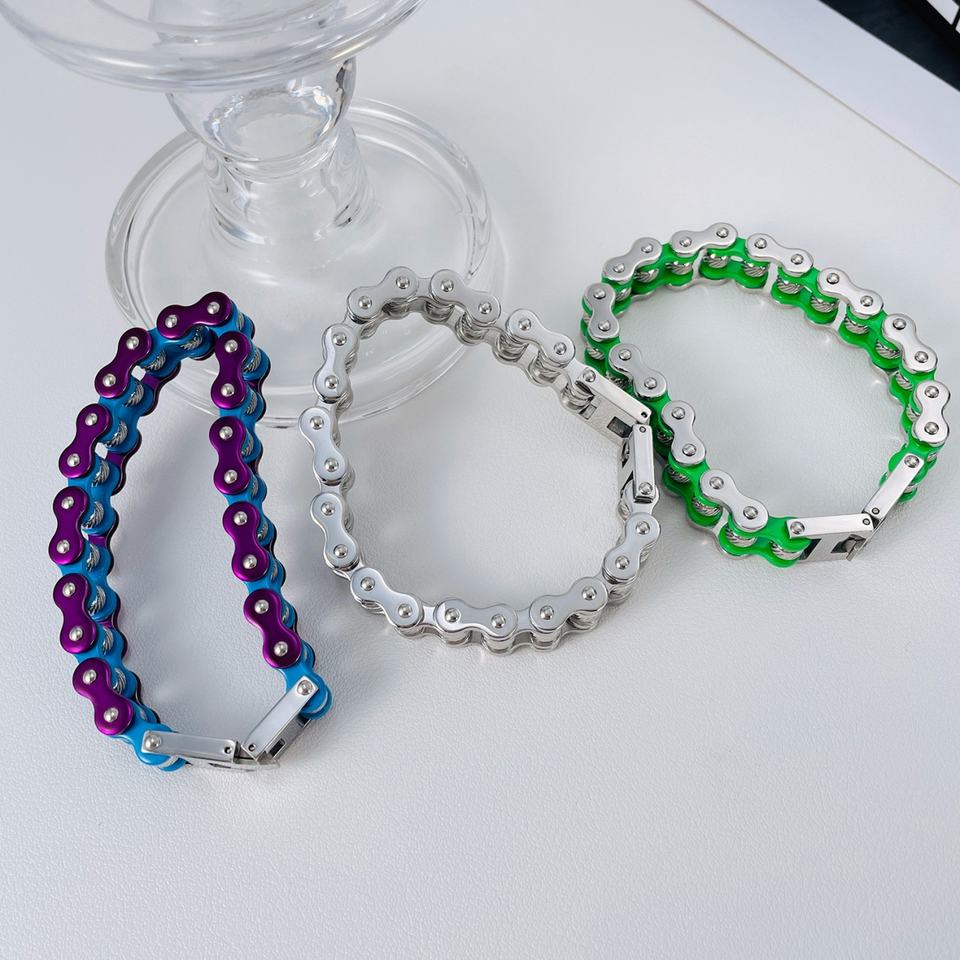 Bracelet chaîne de vélo en acier inoxydable 316L, bleu et violet, fermoir à boîte, étanche, bijoux pour motards, hommes et femmes
