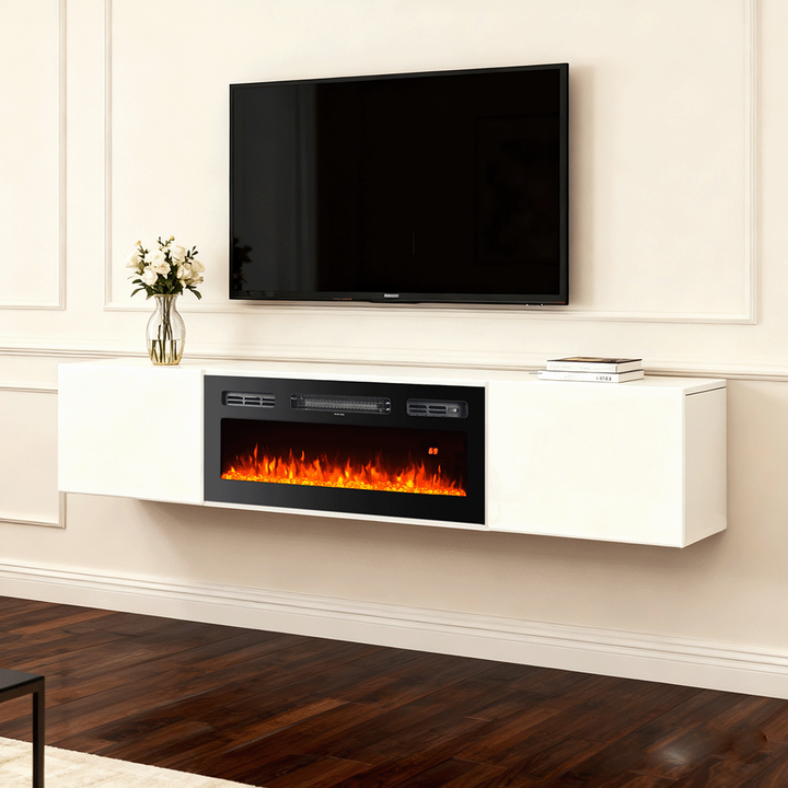 Cheminée électrique artificielle de 32'' avec meuble autoportant de 72'' noir et blanc pour salon