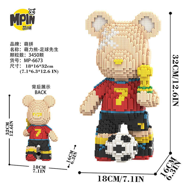 32 CM MPIN Football Player Number 7 Jersey Bear Building Blocks Set Micro Particle Sports Figure Puzzle Toy for Teens Adults