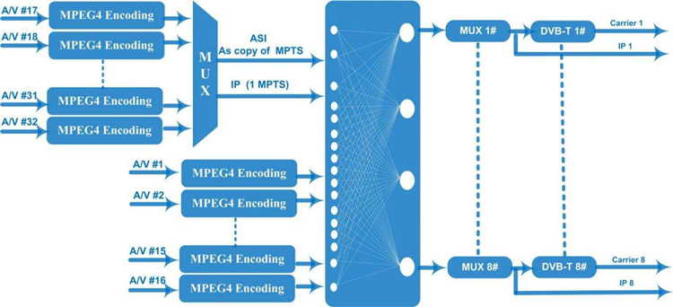 Soutien:8 * Mux-SCR-DVBC sortie/8 * Mux-DVBT sortie