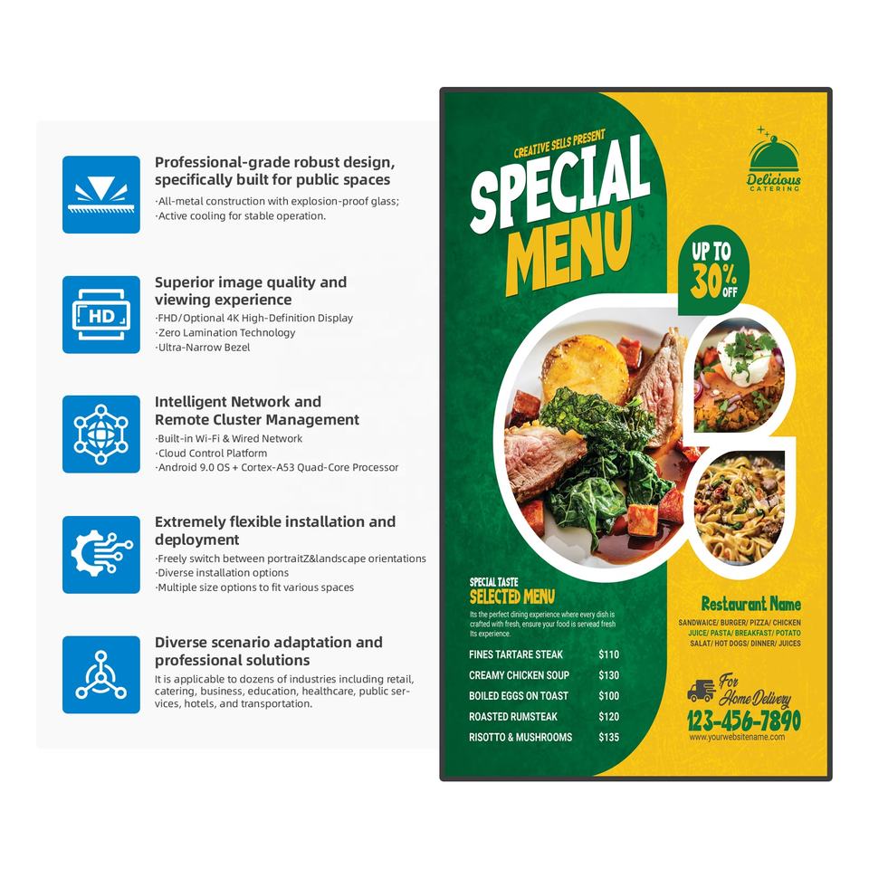 Écran d'affichage mural Android 32 pouces pour kiosque, idéal pour les magasins de détail et les halls d'exposition intérieurs - Garantie 1 an