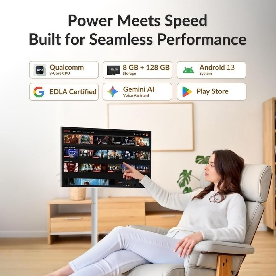 Téléviseur intelligent rotatif d'intérieur de 32 pouces avec diffusion en direct, Android 13, écran tactile et roues de défilement amovibles pour le texte