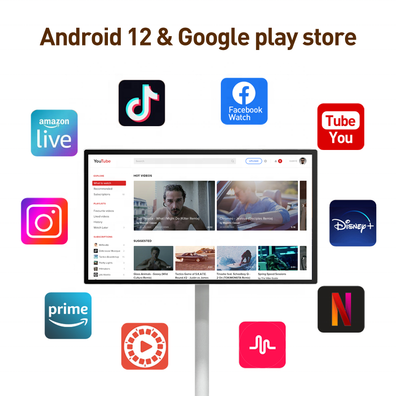 Smart TV Android portable de 32 pouces avec écran tactile Jeux de fitness et publicité vidéo Support IPTV Suivez-moi Batterie TV portable