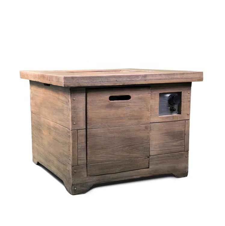 Table de foyer carrée en faux bois de 32 pouces avec compartiment de rangement pour bouteille de gaz 40000BTU pour la décoration de jardin