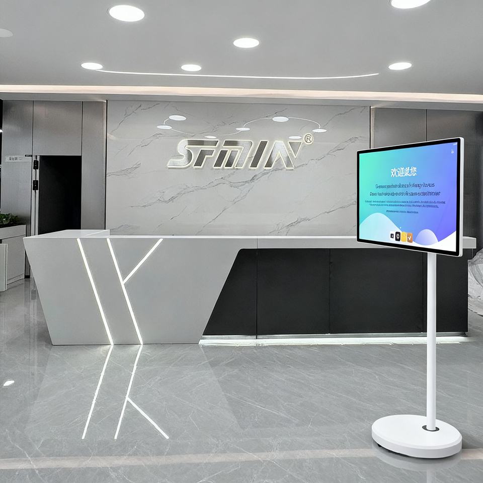 Téléviseur intelligent Android 12 blanc de 32 pouces avec batterie intégrée USB/WiFi Full HD tactile LED LCD avec support mobile
