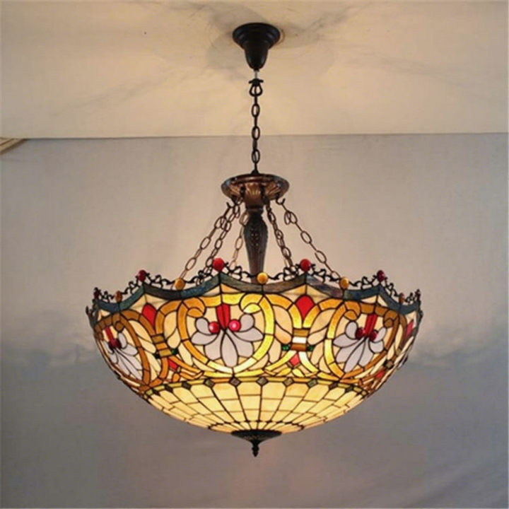 Lustre en verre Tiffany de style rétro, ovale, fait main, de 32 pouces, pour hôtel, villa, salle à manger