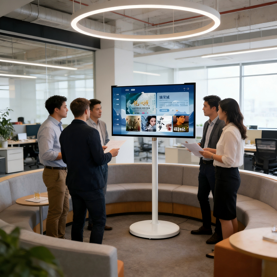 Téléviseur intelligent portable de 32 pouces avec écran tactile, batterie et roulettes pour les appels vidéo, les jeux, la salle de sport, la maison, la salle de classe