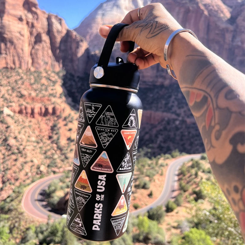 Bouteille d'eau de voyage isotherme sous vide en acier inoxydable 304, sans BPA, à double paroi, sérigraphiée, 32 oz, écologique, maintient au chaud pendant 6 à 12 heures