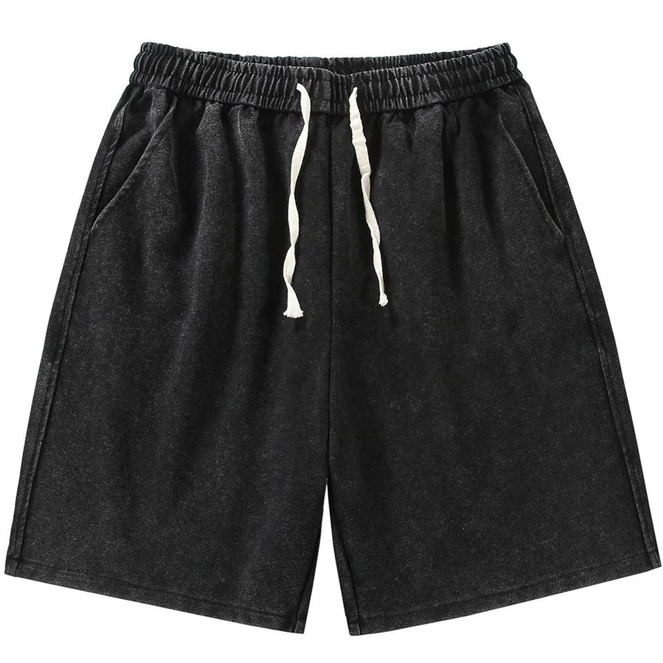 Shorts d'été décontractés amples en coton pur 320G style américain, délavés, effet vieilli, dégradé