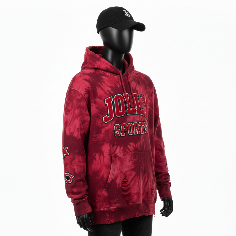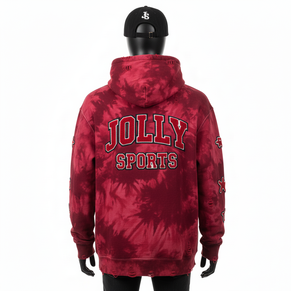 320GSM Men Tie Dye Hoodie Cozy Cotton Fleece Red Swirl Pattern Custom Patch Logo Front Kangaroo Pocket Basics Hoodie