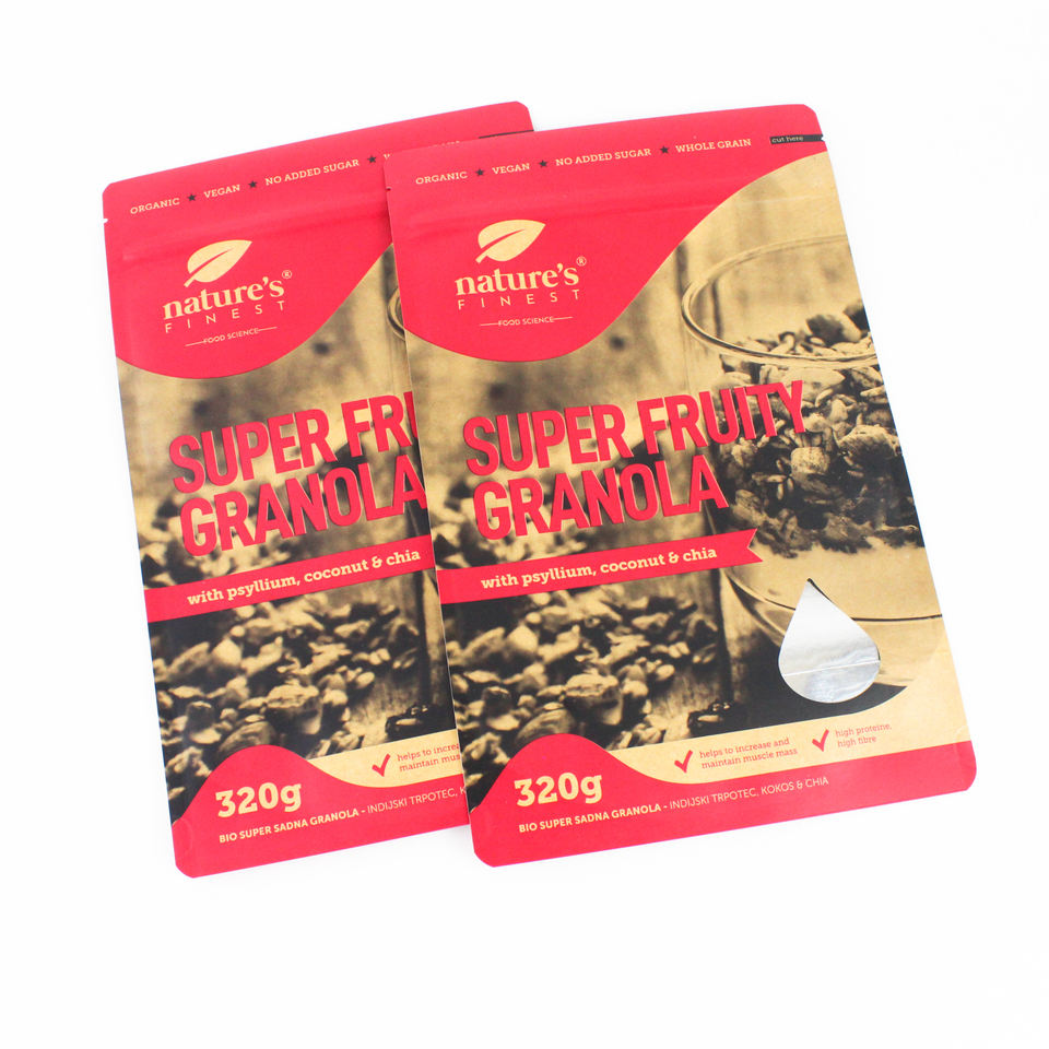 320g Custom Printed Kraft Paper Bags Biodegradable Pouch Snack Packaging Bag With Zipper With Clear Window for Granola