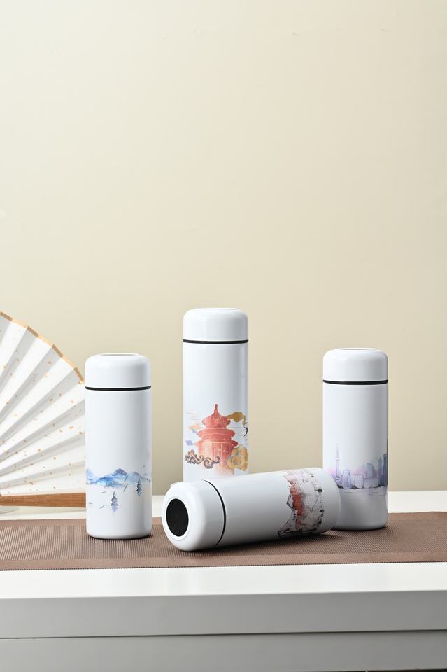 Mini bouteille d'eau sous vide en acier inoxydable à affichage de température LED de style chinois traditionnel de 320ml