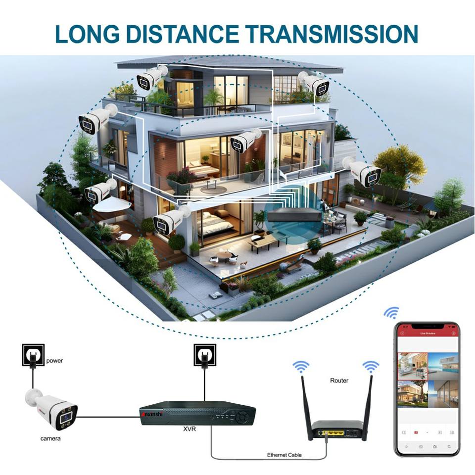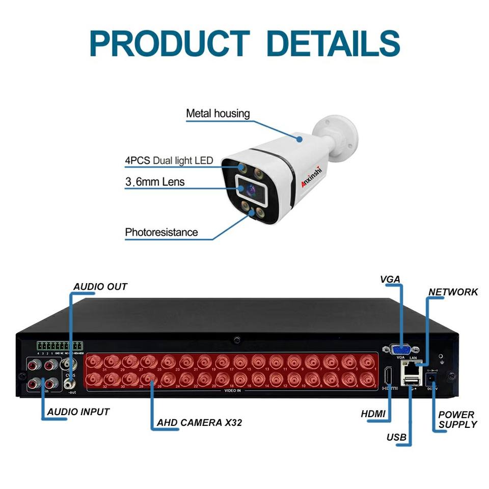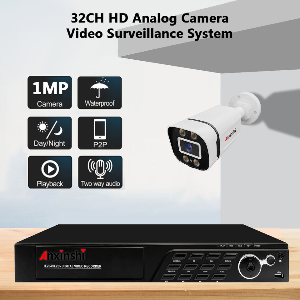 Système de caméra analogique 32CH 1MP HD AHD Kit de caméra de sécurité vidéo extérieur IP66 étanche pleine couleur Vision nocturne application gratuite