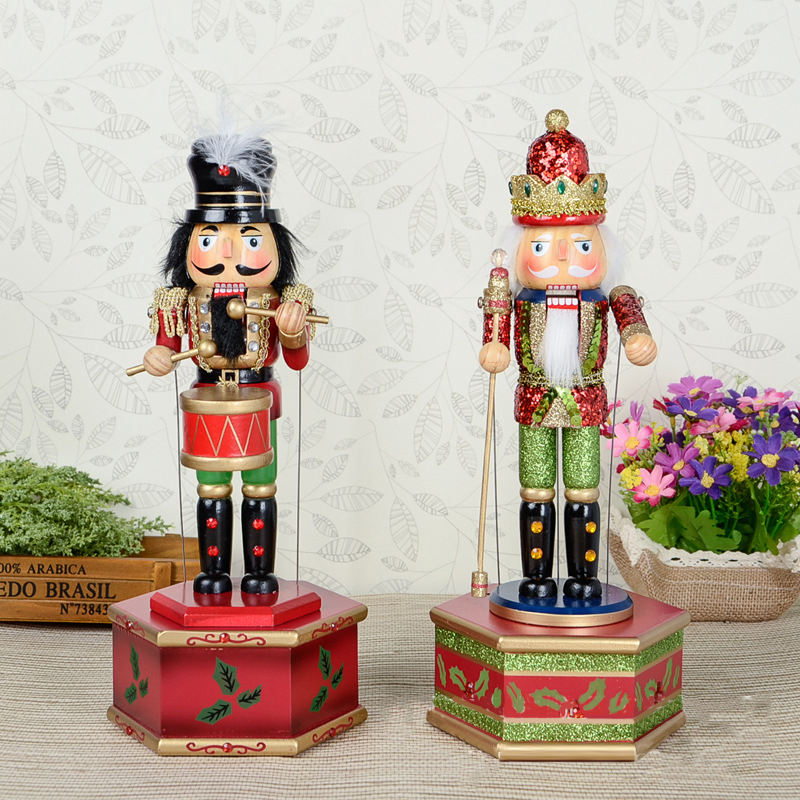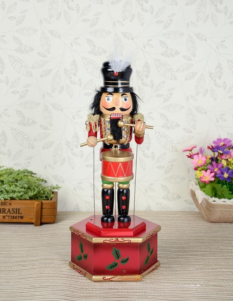 32CM Nouveau Casse-Noisette en Noyer Boîte à Musique Mécanique à Ressort Figure de Marionnette Article Décoratif de Noël