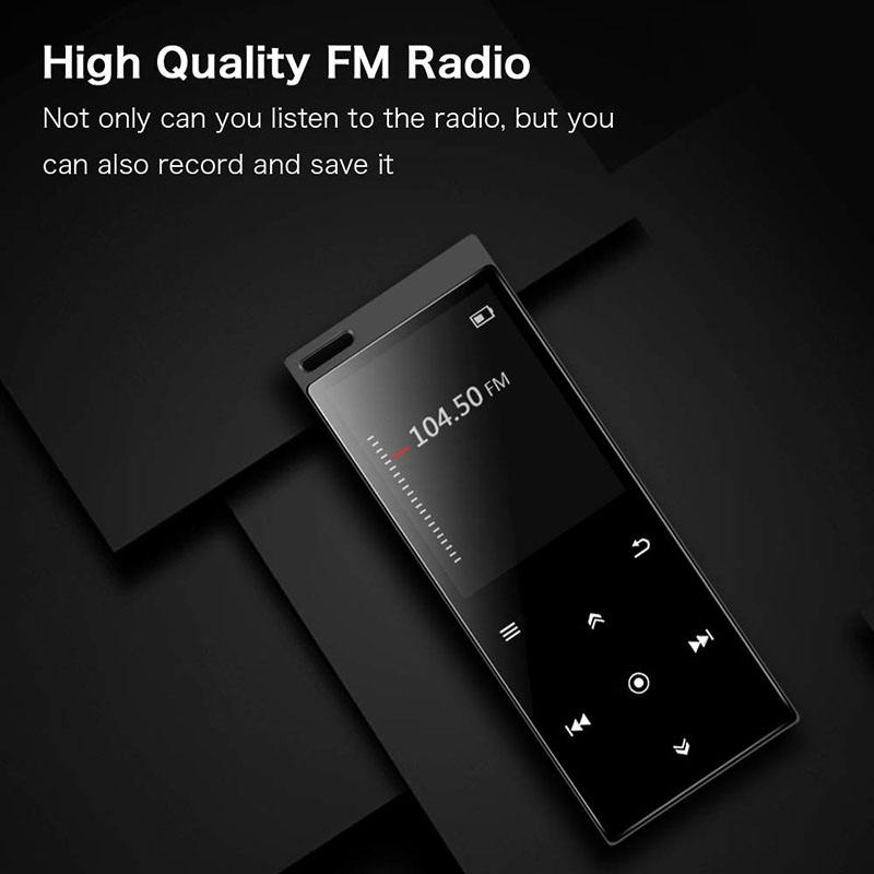 Lecteur MP3 et de films 32 Go avec boutons tactiles, radio HD, enregistreur vocal, fonction e-book, radio FM, téléchargement gratuit, écouteurs style carte