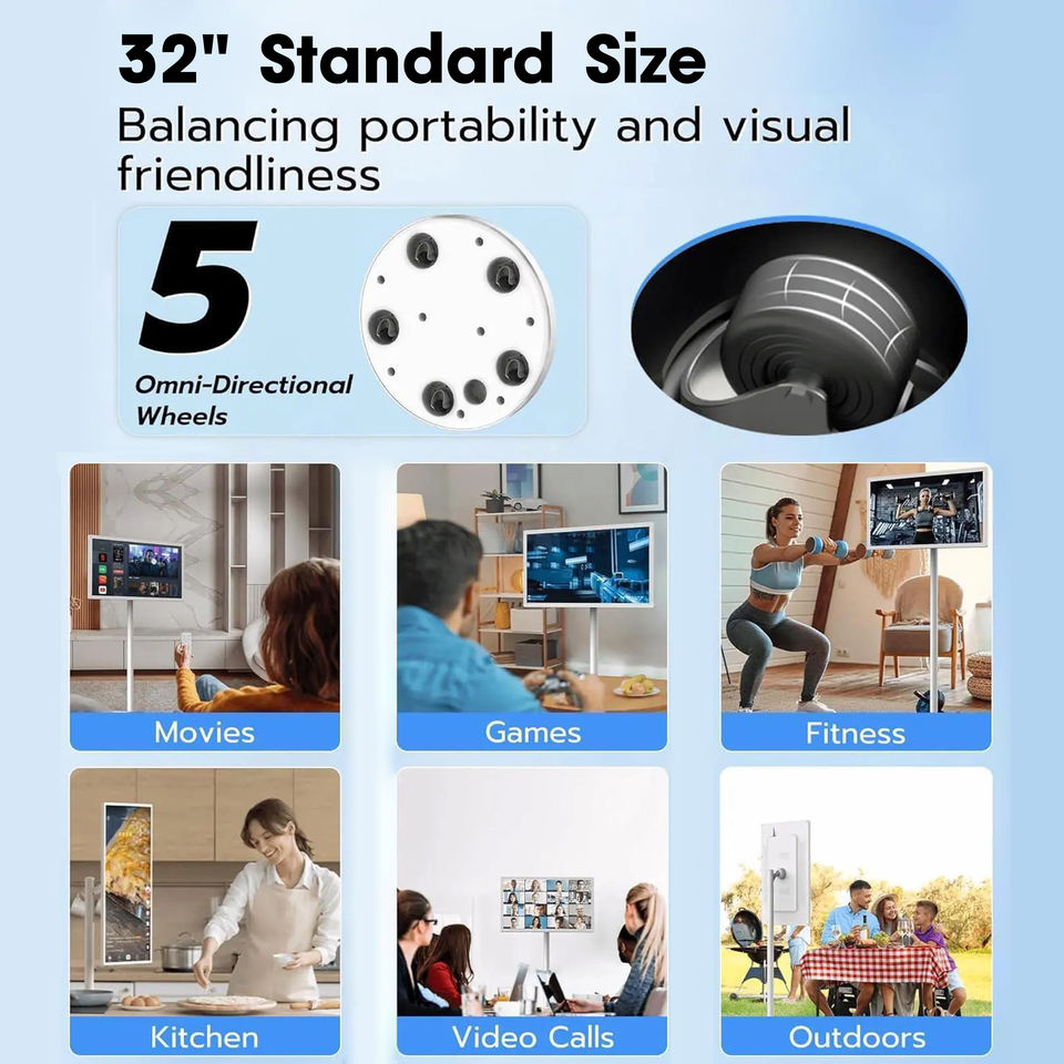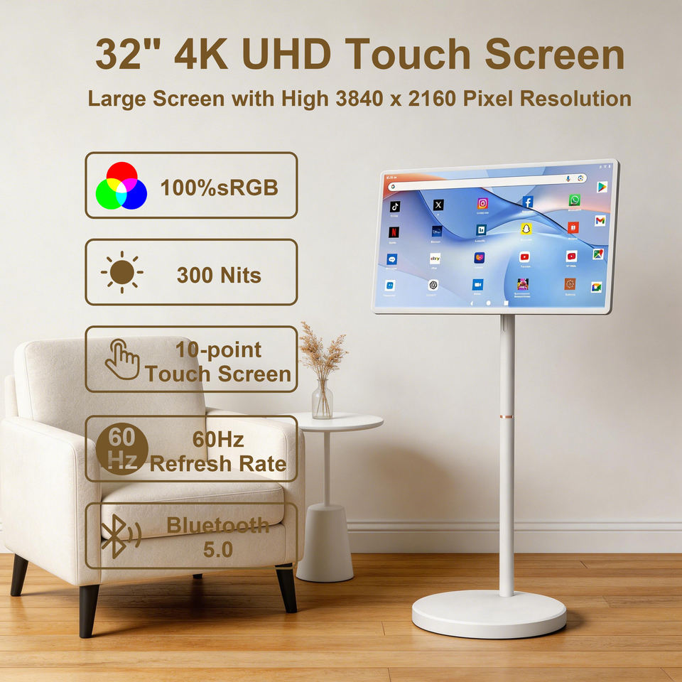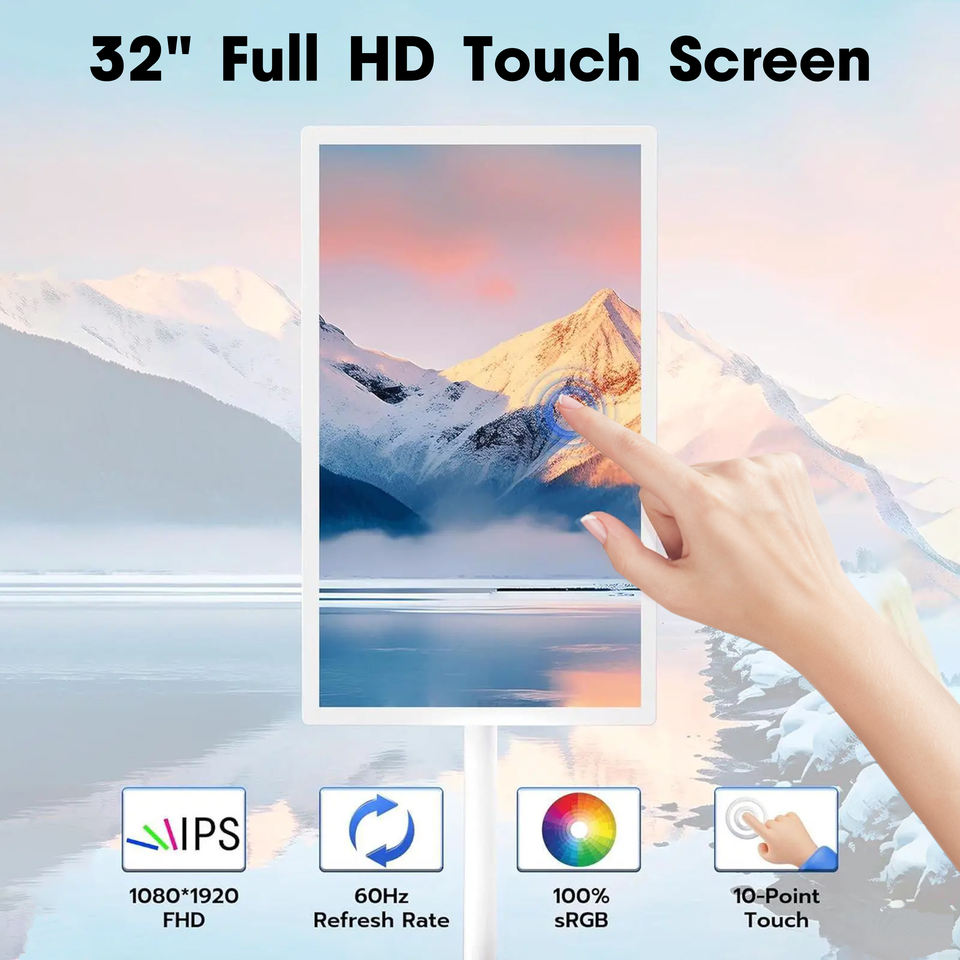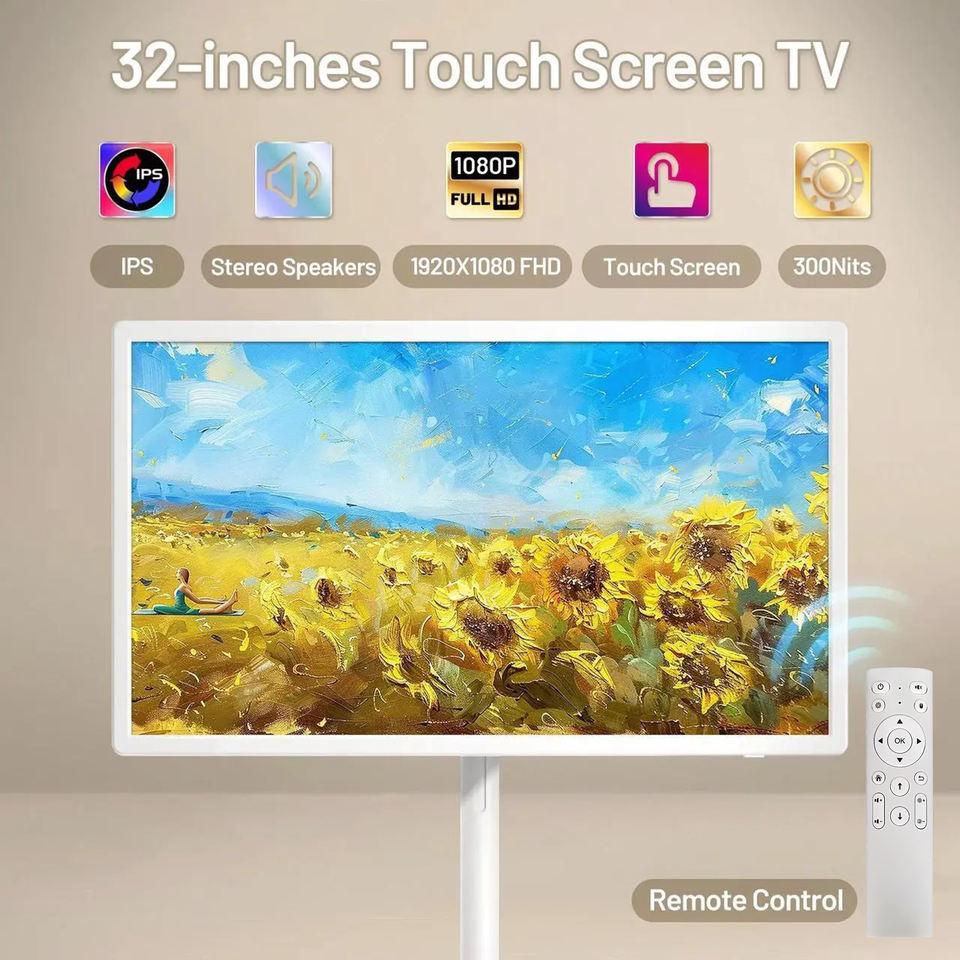 Téléviseur intelligent rotatif HD 32 pouces pour diffusion en direct, réglable en hauteur, Android, avec batterie intégrée, écran tactile et interface USB