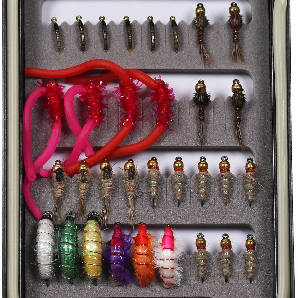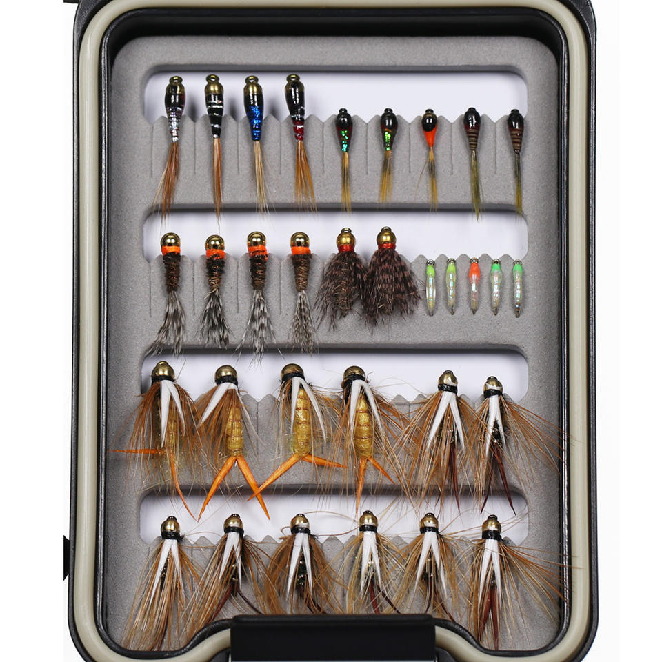 32PCS/SET Trout Fishing Flies Collection Dry Wet Nymph Streamers Perdigon Euro Fly Assortment with Box Flyfishing Fly Lures Kits