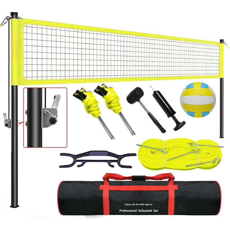 Filet de volley-ball à hauteur réglable de 32 pieds filet de compétition multi-sport intérieur ou extérieur pour jouer au volley-ball et assemblage facile
