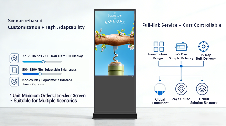 Écran publicitaire sur pied de 32 pouces, panneau LCD de qualité A, avec caméra, imprimante, scanner en option, logiciel gratuit pour les magasins