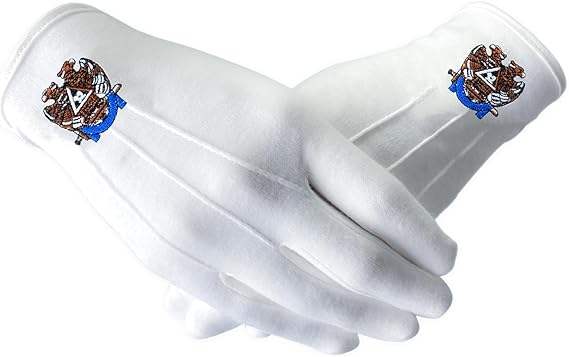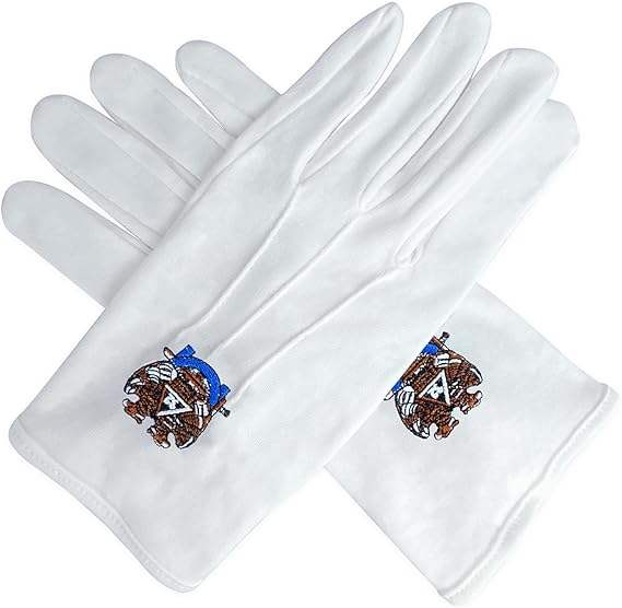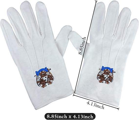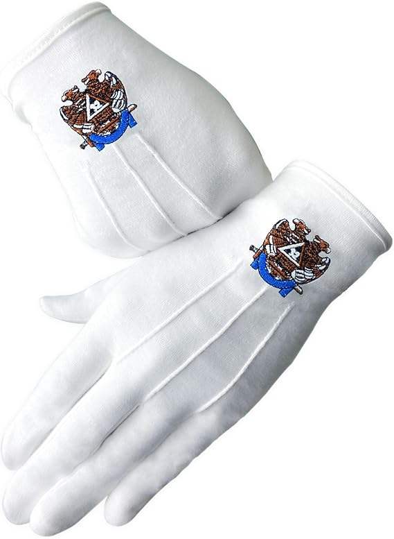 32nd Degree Scottish Rite Masonic White Gloves Polyester Polyester Scottish Rite gloves with classic eagle emblem