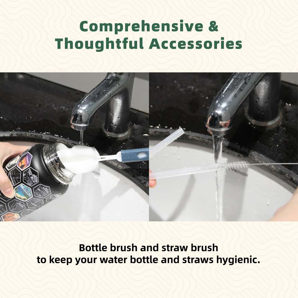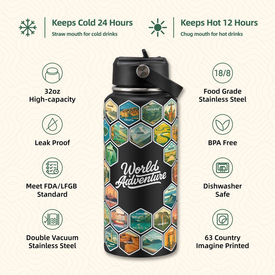Bouteille d'eau isotherme en acier inoxydable 32oz Sports World Explorer Adventure, écologique, avec paille, autocollants et logo personnalisé, double paroi sous vide