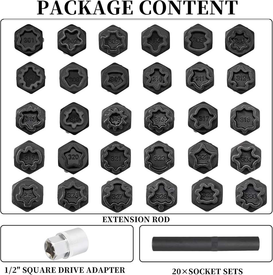 32pcs Rim Lock Socket Set for Mercedes Benz for Installation and Dismantling of Mercedes-Benz Rim Locks Kits