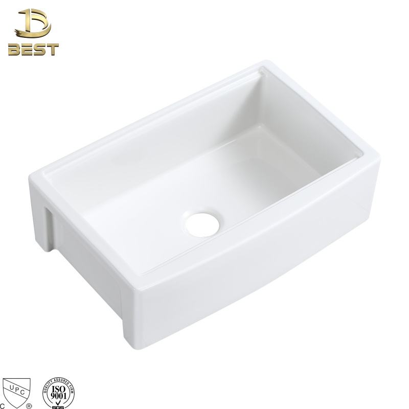 33*21 Évier de cuisine à double cuvette de style fermier Forme rectangulaire en porcelaine avec égouttoir