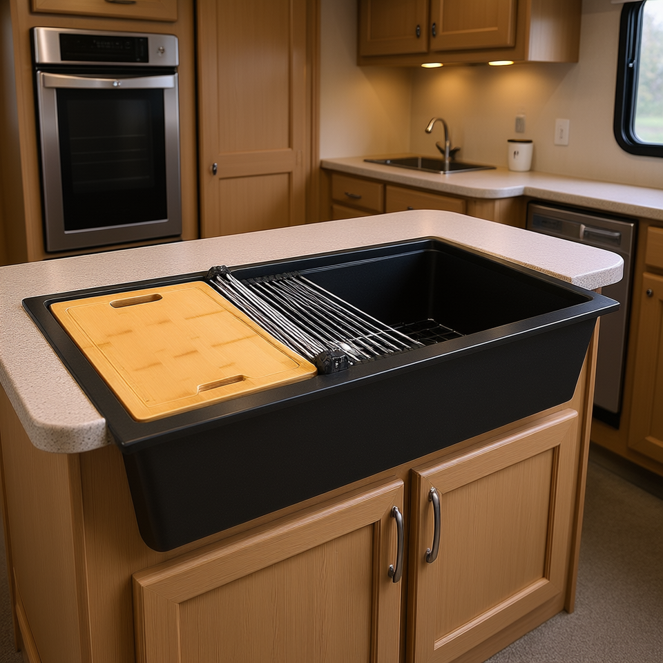 Évier de cuisine encastrable 33 pouces à cuve unique, finition mate, design rectangulaire, pour installation sous plan en camping-car ou bar