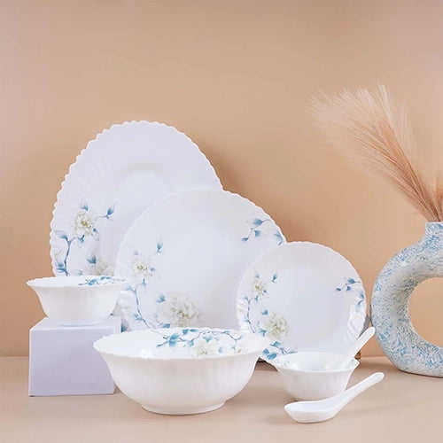 Ensemble de vaisselle en opale multi-fleurs de 33 pièces, ensemble de 4 pièces moderne, durable, compatible lave-vaisselle, design classique, écologique, personnalisable