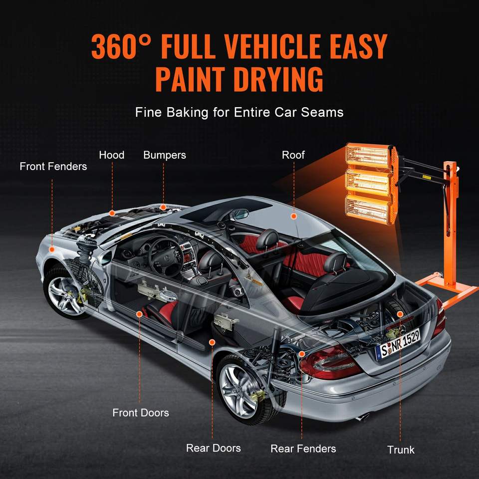 Lampe de séchage infrarouge 3300W avec minuterie 1-60 min, chauffage automatique, zone de cuisson de 8,61 pieds carrés, support de lampe pour voiture, pour la cuisson par pulvérisation de plats et assiettes