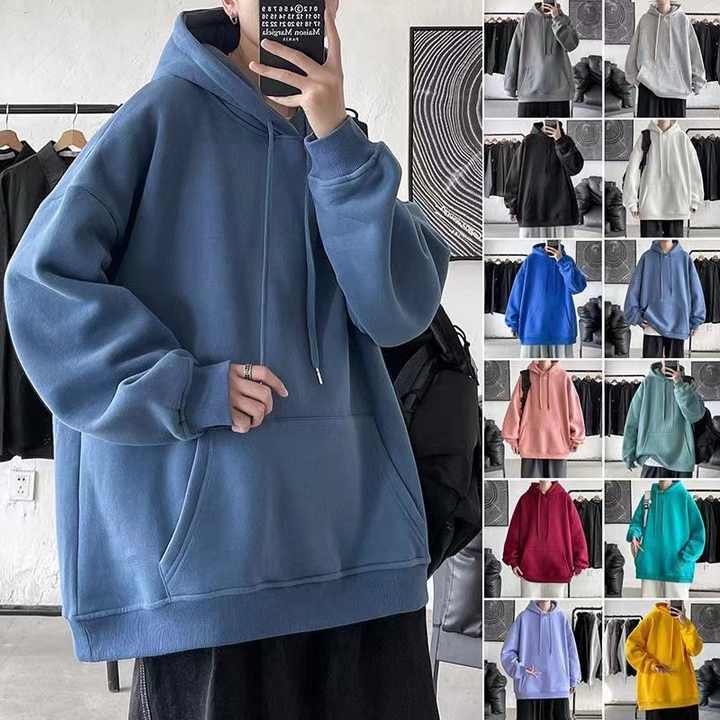 330g Autumn and Winter Popular Hooded Solid Color Cotton Thick Sweater Men's Long Sleeve Hoodie