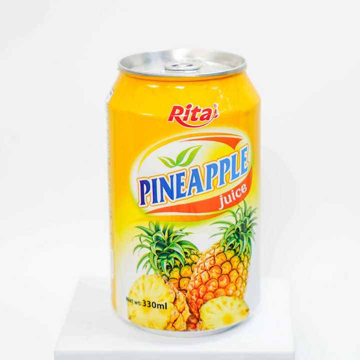 Jus en conserve 330 ml avec pulpe, saveur ananas, fabricant vietnamien, boisson naturelle, export, conditionné en canettes, produit à boire