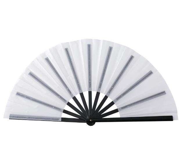 Ventilateurs pliants de 33 cm (13 pouces) en polyester noir et blanc, à personnaliser, avec poignées vierges en plastique, idéaux pour Noël – Vente directe usine