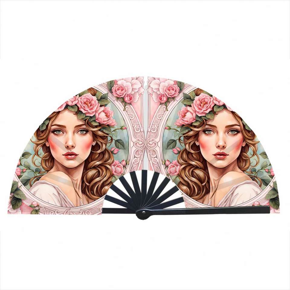 Éventail pliable en bambou de 33 cm pour festivals, promotions et fêtes – Éventail à main en nylon élégant avec motif peint