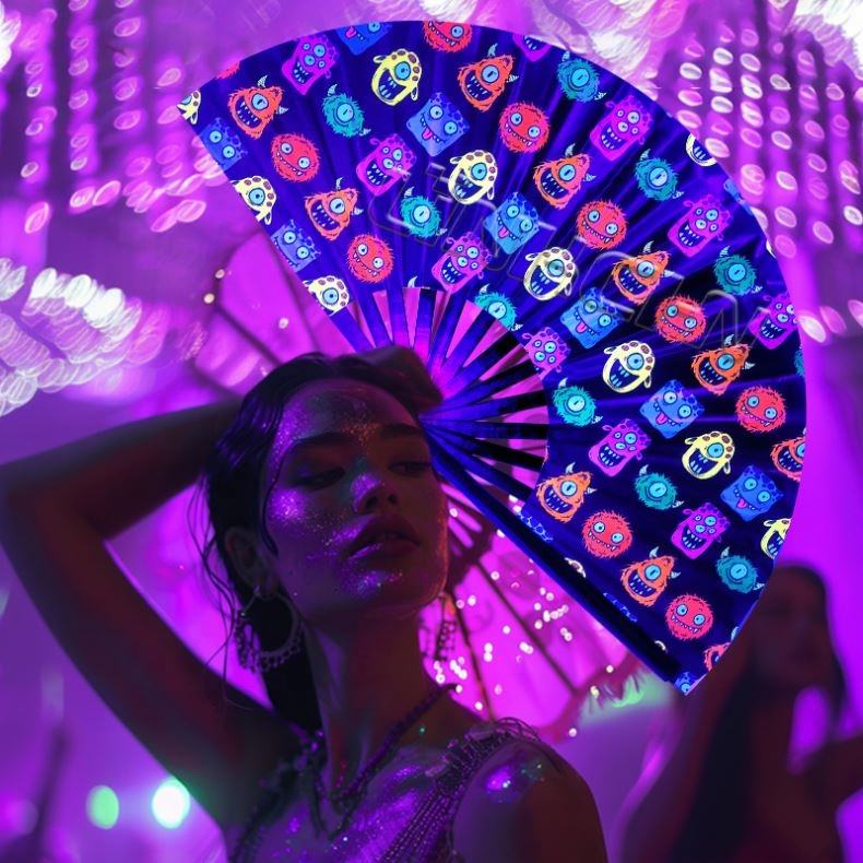 Éventail à main en bambou réactivé aux UV de 33cm, personnalisable, décoré d'Halloween, en plastique, pour promotion musicale, modèle souvenir